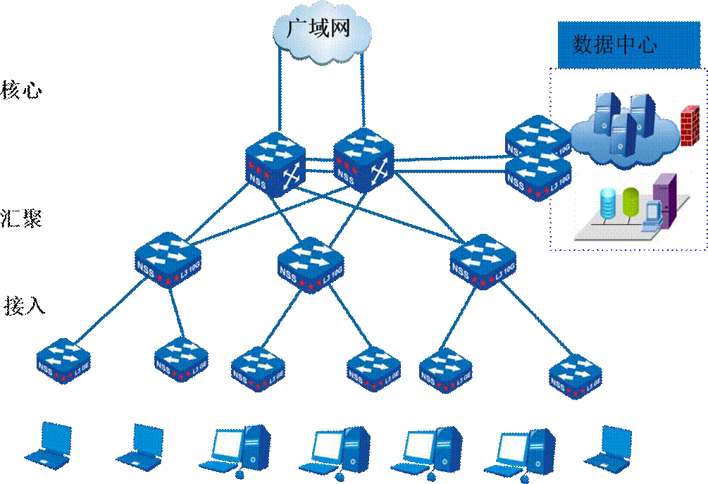 在涉密业务或安全性要求较高办公局域网中的典型三层组网方式下,使用 ZD H4680-8 作为核心设备, H2610G 作为楼道汇聚设备和接入设备,组建自主安全高速网络。ZD H4680-8 高密度万兆接入能力,可以满足网络万兆汇聚需求。ZD H4680-8 支持多种安全技术和策略,支持配置和协议国密加密,可以为涉密网络构建高安全的 IP 网络。配合智达 H2610G 系列千兆交换机,可以为中小型网络提供自主安全全网解决方案。