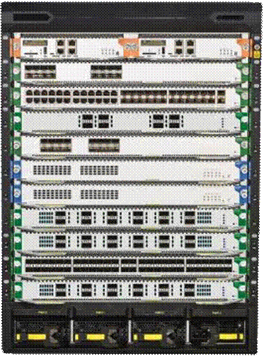 机架式交换机主机箱,8+2个普通业务插槽,2个主控槽位、2个交换模块插槽,2个风扇槽位,4个电源插槽 |